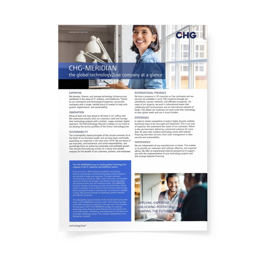 • devicenow: global IT equipment rental paired with comprehensive service • Non-captive offering available in 190 countries worldwide • Device-as-a-service concept as a key component of CHG-MERIDIAN’s growth strategy