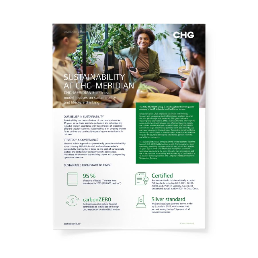 • circulee offers sustainable solutions for the use of IT hardware to small and medium-sized businesses • The use of second-hand IT equipment reduces the carbon footprint by 70-80 percent compared with new devices • As co-founder and principal investor, CHG-MERIDIAN wants to make sustainable lifecycle management a driver of growth