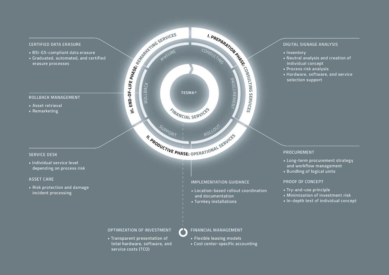 It pays to think of the end, even at the start – and a sophisticated end-of-life process will benefit customers in many ways, especially on DSS projects. That is why CHG-MERIDIAN offers a comprehensive service package at the end of the period of use. The package includes data erasure using our proprietary and certified eraSURE® process, which forms an integral part of remarketing. Erasing data in accordance with international standards ensures that customer data does not fall into the wrong hands and that assets are free of old data when they are remarketed. The customer can also rest assured that our commitment to green IT means we recycle assets in accordance with the WEEE standard.